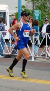 As we make the final turn, I wonder if my family was able to make it to the finish area before me. I get my answer. I first hear, than see my dad yelling for me off to the right. I step it up. Probably just over a quarter mile to go now. I keep it just fast enough that the woman behind me doesn’t fall too far back. I wave her forward, hoping she will trade leads with me, but she does not. I can see the finish, the clock ahead, and know I will be under 2:50 easily. The streets are lined with spectators, and I hear Jen off to my right and know she is busy taking pictures while she encourages me.